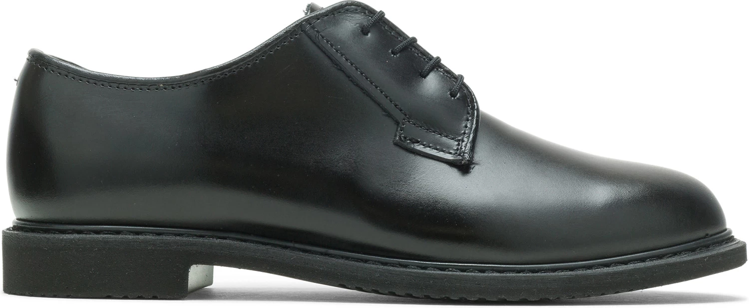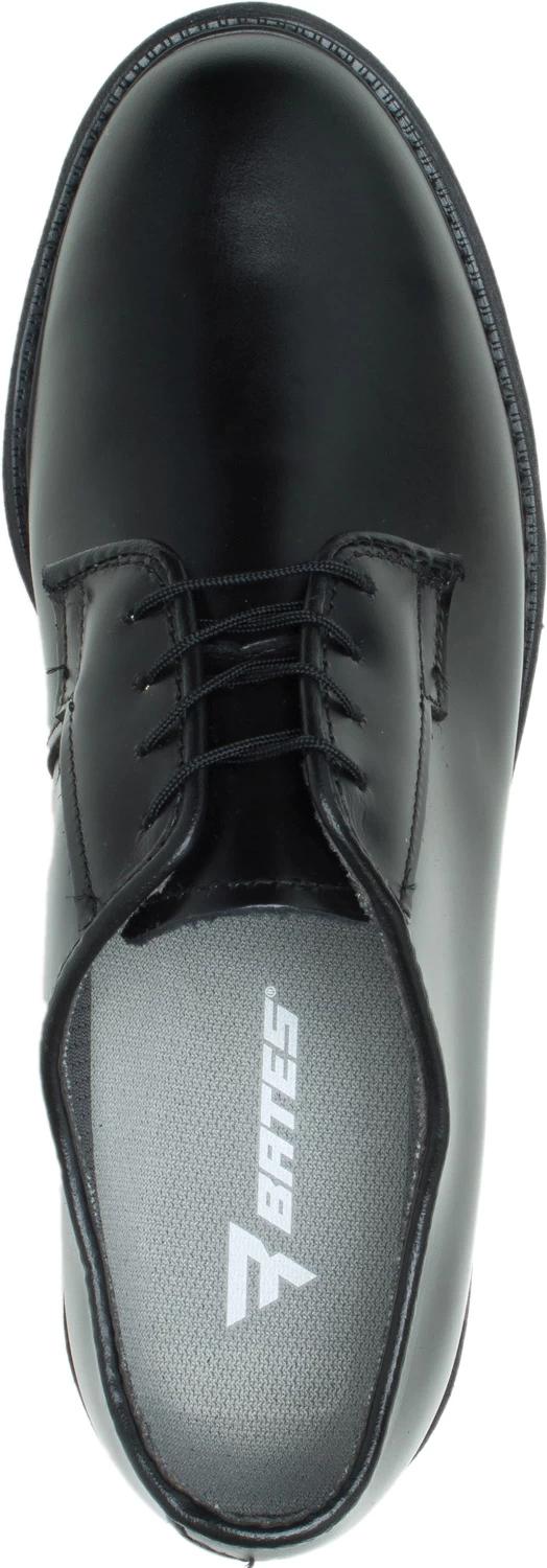 Polishable leather upper. Breathable, moisture wicking lining. Removable cushion footbed. Bates Lites non-marking, lightweight, PU outsole. Goodyear welt construction. Assembled in U.S.A. Soft toe. No safety toe cap.