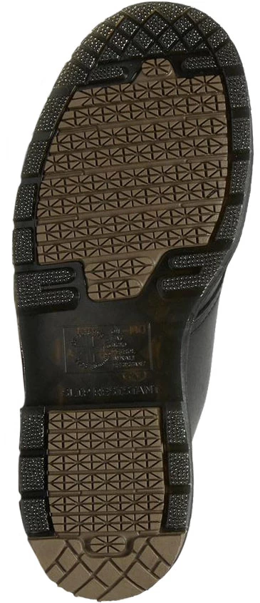 Coated, full grain, water and spill resistant leather upper. Moisture wicking SoftWair footbed with memory foam pods. Air cushioned PVC outsole fused with central rubber pods of GRIP-TRAX. Goodyear welt construction. Soft toe. No safety toe cap.