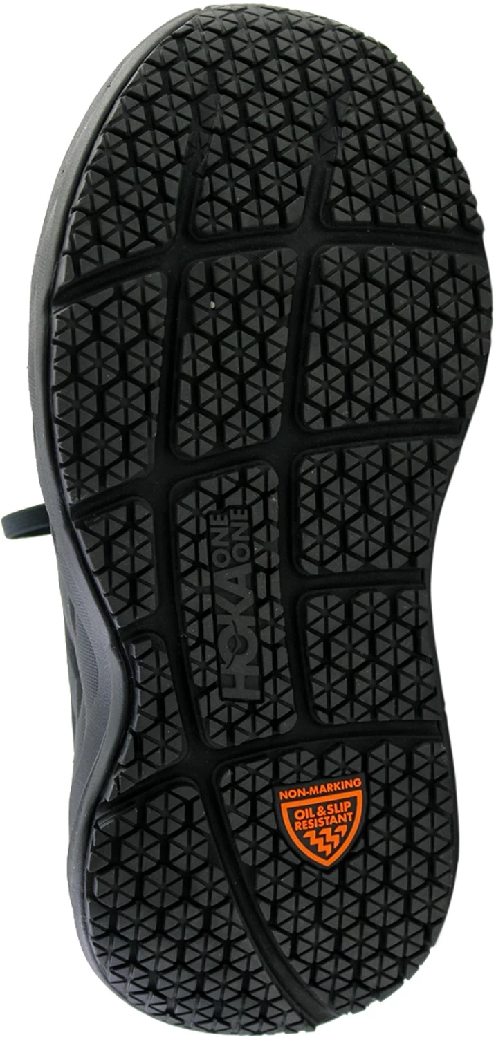 Water resistant leather upper protects against moisture. Memory foam collar for plush comfort. Compression molded EVA midsole for signature HOKA cushioning. Early stage Meta-Rocker for a smooth ride through each step.Full ground contact slip-resistant rubber outsole. Soft toe. No safety toe cap.
