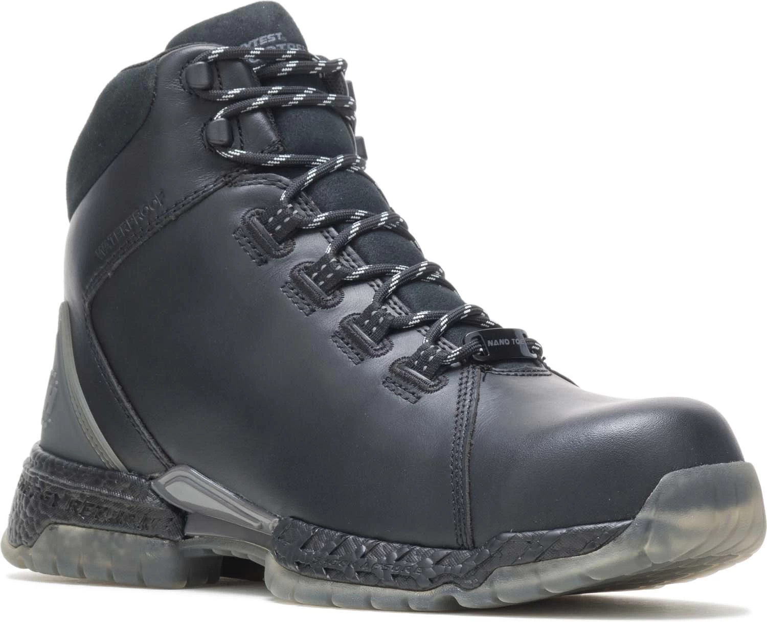 Full grain waterproof leather upper. Moisture wicking mesh lining with waterproof membrane. FootRests tri-density anti-fatigue footbed. XERGY anti-fatigue foam midsole absorbs and returns energy. Oil and slip resistant wide track TPU outsole. Waterproof. Nano toe. EH. ASTM F2413-18 M/ I/ C EH compliant. Podiatric seal of approval.