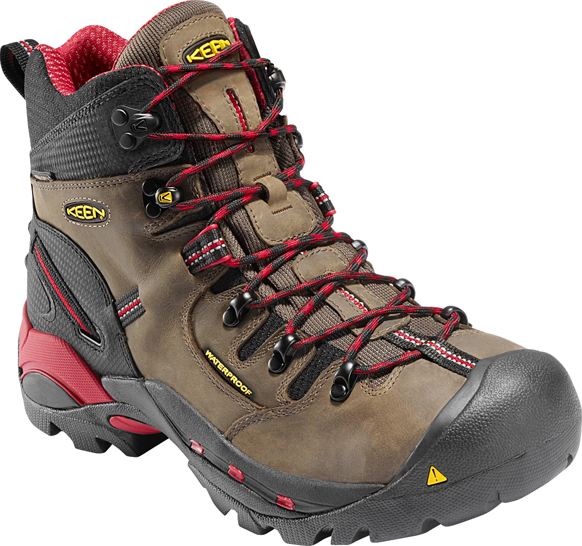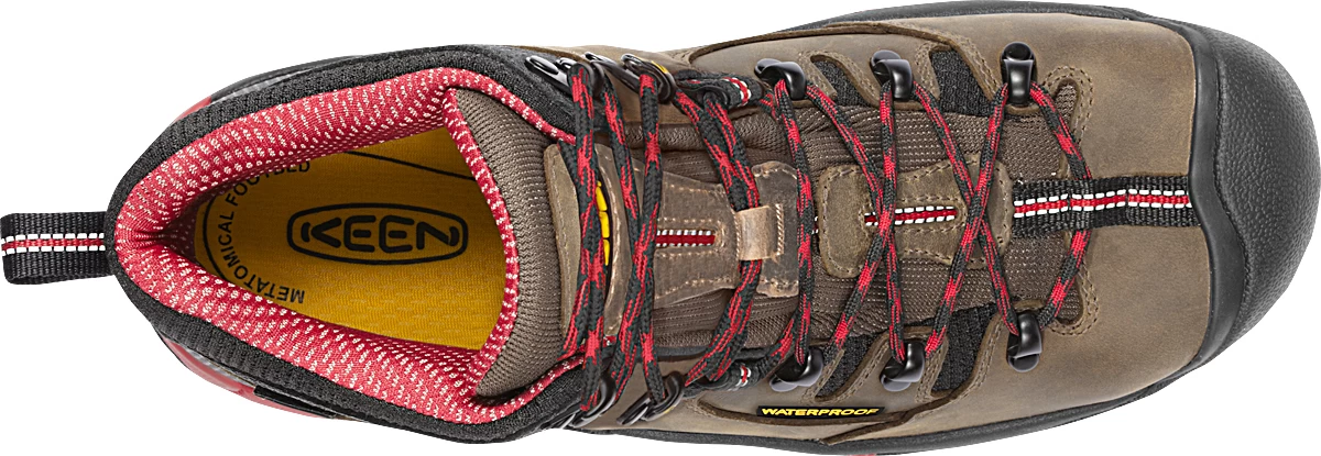 Leather upper. 2 Zone comfort lining with KEEN.Dry waterproof, breathable membrane. KEEN Key-Tech full length TPU interlocking torsion plate. Dual density compression molded EVA and PU midsole. Oil and slip resistant rubber outsole.Steel toe. EH. WP. ASTM F2413-18 M/ I/ C EH compliant.