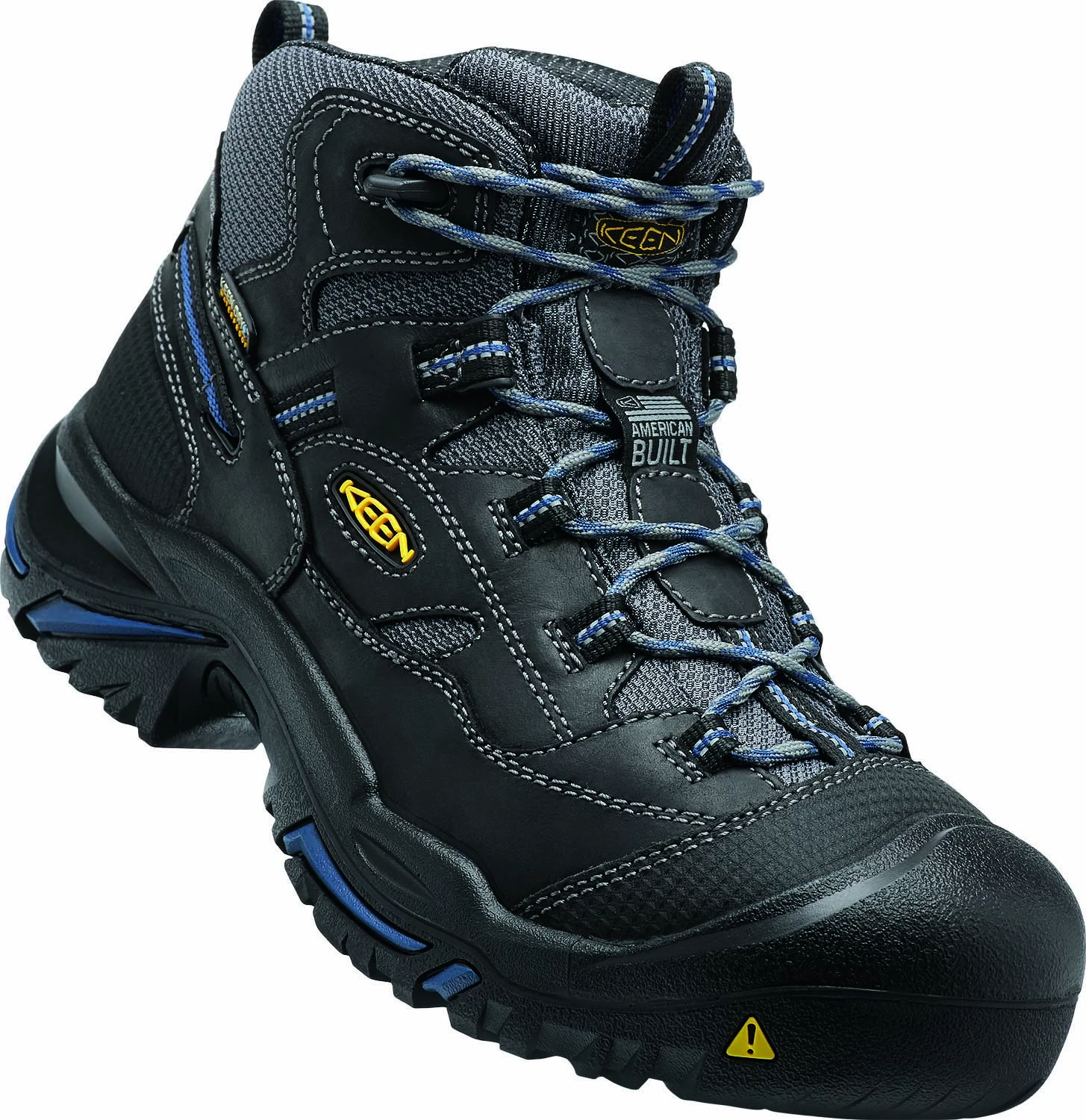 Waterproof nubuck upper leather. Hydrophobic/hydrophilic 2 zone comfort lining with KEEN.Dry waterproof membrane. Removable metatomical, dual density EVA footbed. Direct attached PU mid with KEEN.Protect PU injected toe overlay.TPU stability shank. KEEN.Grip oil and slip resistant rubber outsole. Assembled in USA. WP. ASTM F2892-11 EH compliant. Soft toe. No safety toe cap.