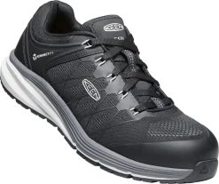 Leather and mesh upper with reflective webbing. Moisture wicking textile lining. Removable metatomical, dual density, EVA footbed. KEEN.ReGEN compression resisting, cushion midsole. External Stability Shank for midfoot support.Oil and slip resistant rubber outsole. Steel toe. SD. ASTM F2413-18 F/ I/ C SD compliant.