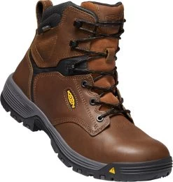 Leather upper. KEEN.DRY waterproof membrane construction. KEEN.BELLOWS FLEX allows foot to bend and flex with ease. KEEN.ReGEN provides added energy return. Oil and slip resistant outsole. Carbon fiber toe. EH. WP. ASTM F2413-18 F/ I/ C EH compliant.