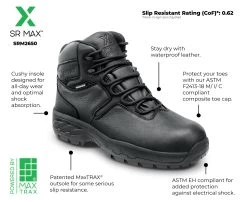 SR Max SRM2050 Burke, Men’s, Black Oxford Style, Comp Toe, EH, MaxTRAX Slip Resistant, Work Shoe