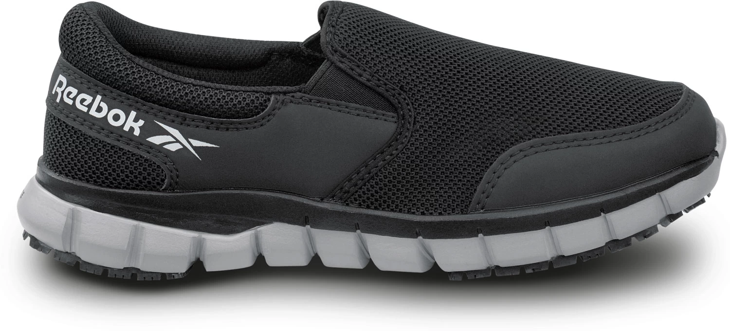 Reebok Work SRB031 Sublite Women’s, Black/Grey, Slip On Athletic Style, MaxTRAX Slip Resistant, Soft Toe Work Shoe