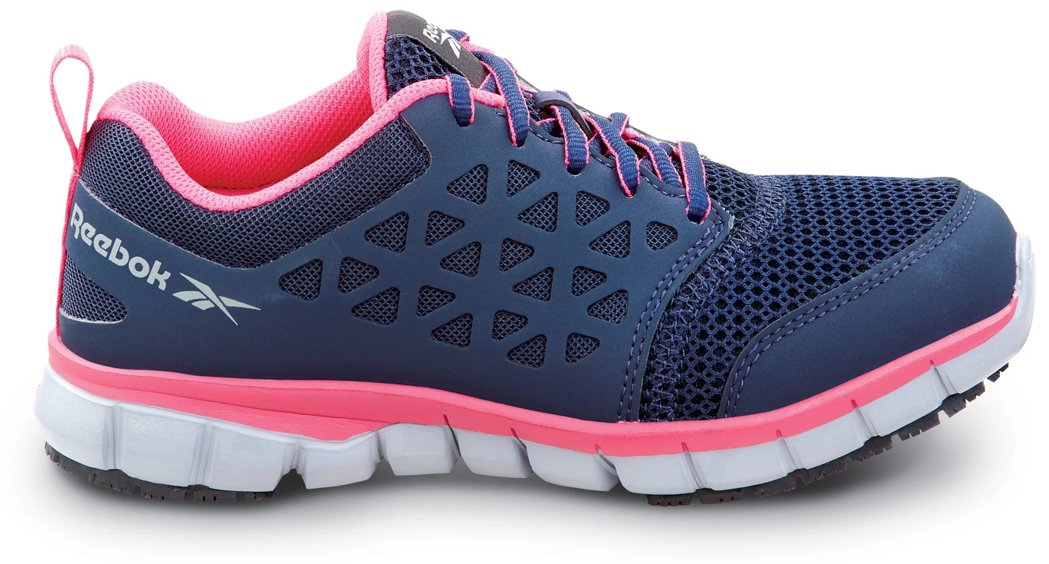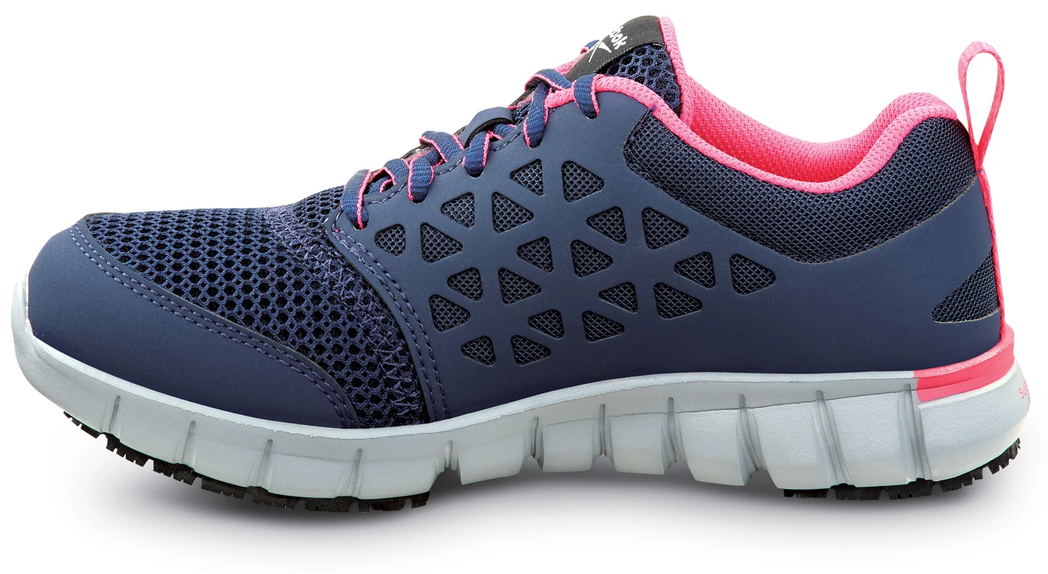 Reebok Work SRB032 Sublite Cushion Work, Women’s, Navy/Pink, Athletic Style, MaxTRAX Slip Resistant, Soft Toe Work Shoe