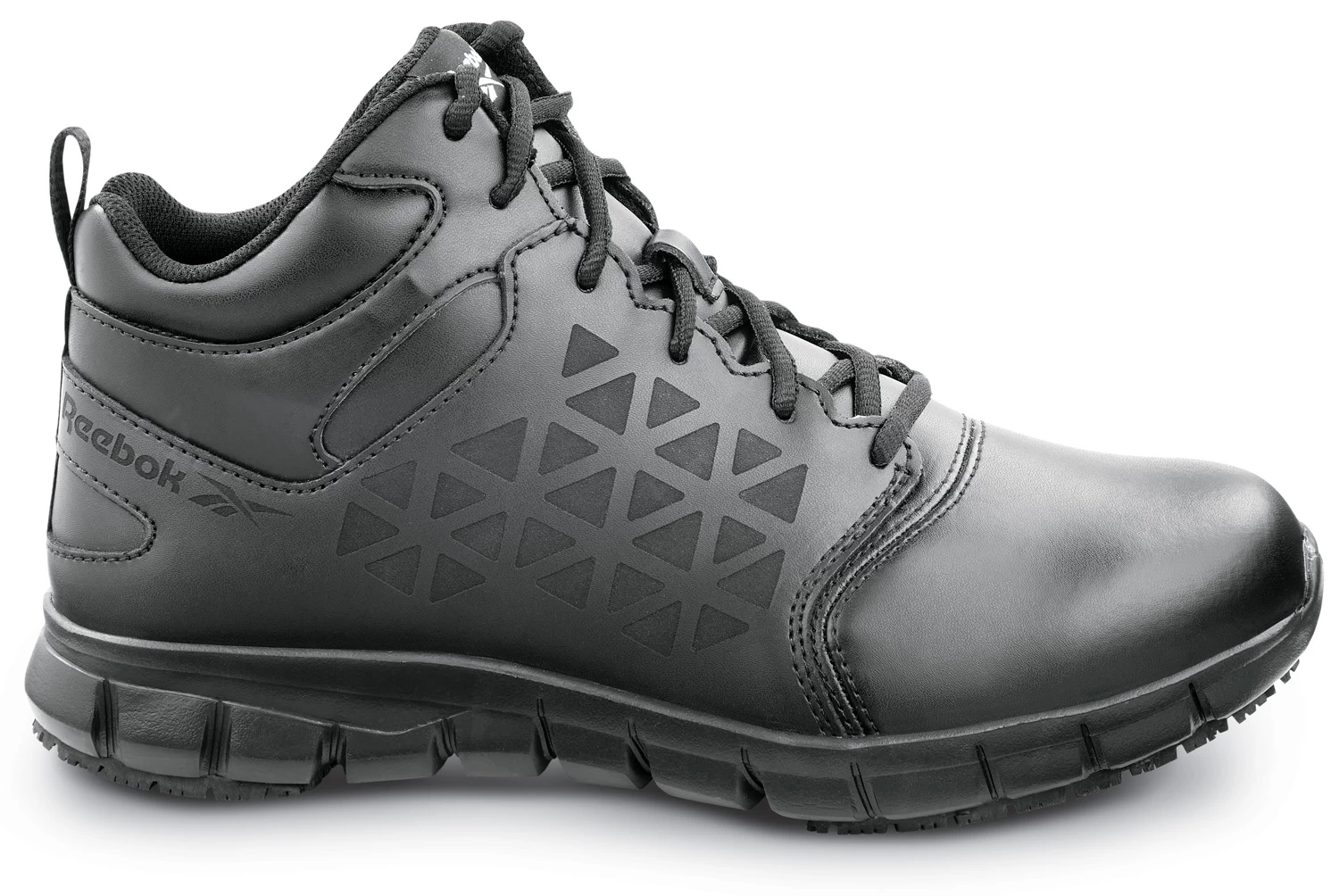 Reebok Work SRB3204 Sublite Cushion Work, Men’s, Black, Mid-Athletic Style, MaxTRAX Slip Resistant, Soft Toe Work Shoe