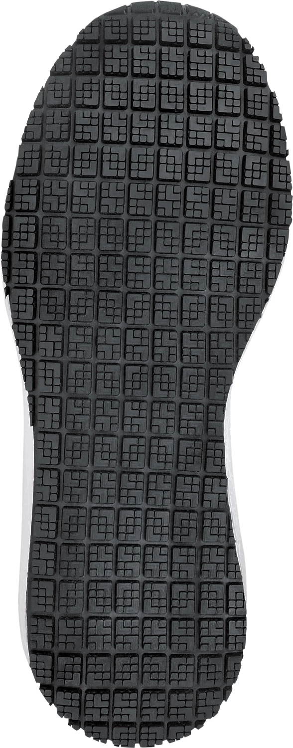Breathable mesh upper. DryKick waterproof membrane in toe area protects against food and liquid spills in the workplace. Moisture wicking mesh lining. Removable EVA cushion footbed. Floatride Energy Foam midsole. SR Max MaxTRAX patented oil and slip resistant rubber outsole. Soft toe. No safety toe cap.