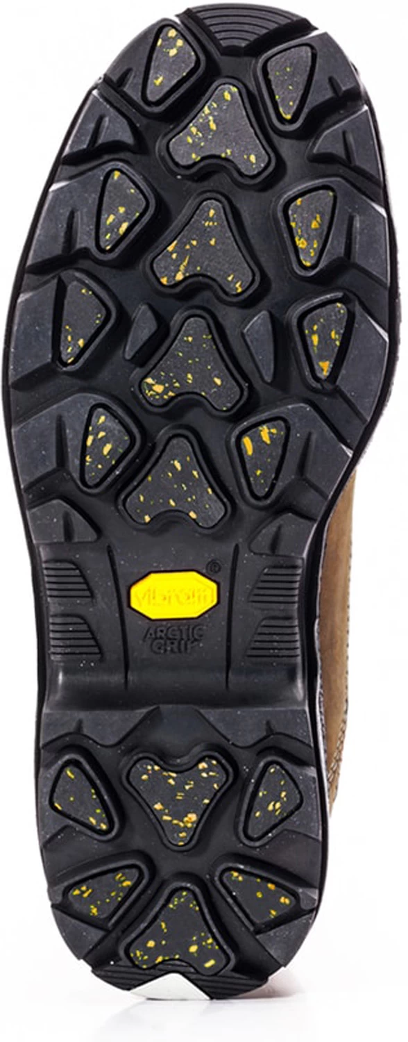 Crazy Horse leather and SHIELDTEX abrasion resistant fabric with PARESHOK TPU abrasion resistant toe bumper. Waterproof AIRFLOW membrane. Breathable R-LITE footbed. Direct attached PU midsole. Vibram Arctic Grip slip-resistant, rubber outsole. Comp toe. EH. Nonmetallic puncture resistant plate. Metal free. ASTM F2413-18 M/ I/ C EH PR compliant. CSA grade 1 toe, Omega, green triangle compliant. Assembled in Canada.