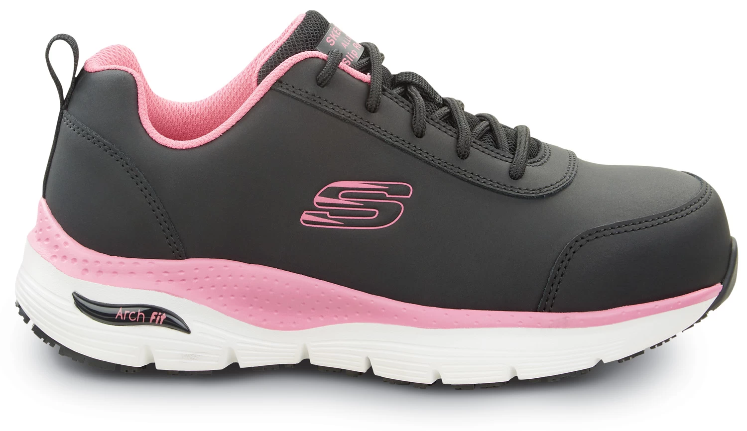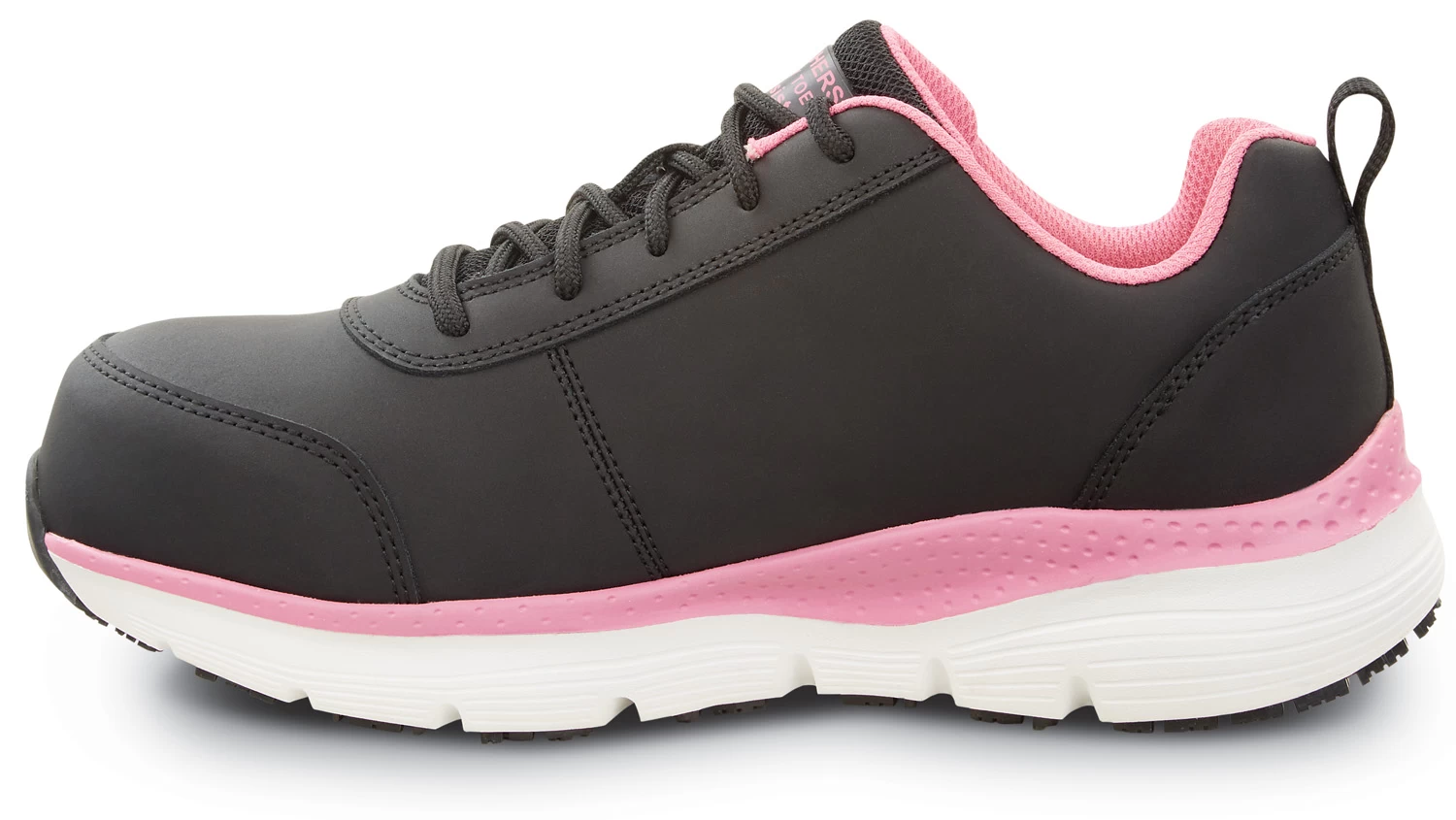 SKECHERS Work Arch Fit SSK108098BKPK Reagan, Women’s, Black/Pink, Athletic Style, Alloy Toe, EH, MaxTRAX Slip Resistant, Work Shoe