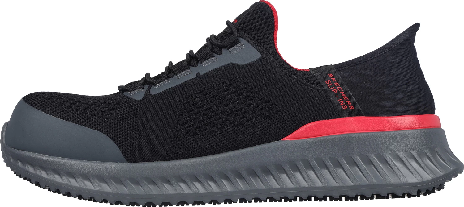 SKECHERS Work SK200206BKRD Tilido-Fletchit Hands Free Slip-ins™, Men’s, Black/Red, Comp Toe, EH, Slip Resistant, Athletic, Work Shoe