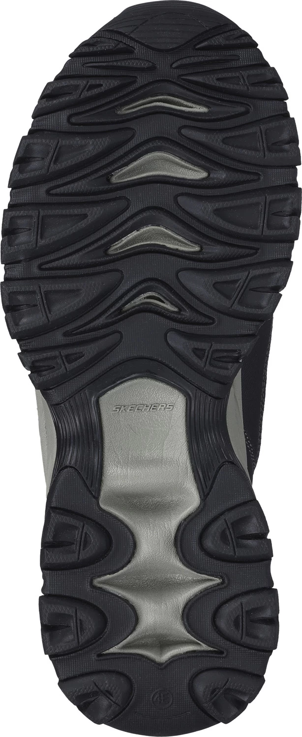 Leather, synthetic, textile upper. Skechers Hands Free Slip-ins™ technology molded heel panel for easy entry. Air cooled memory foam cushion footbed. EVA midsole. Rubber lug outsole. Steel toe. EH. ASTM F2413-18 M/ I/ C EH compliant.