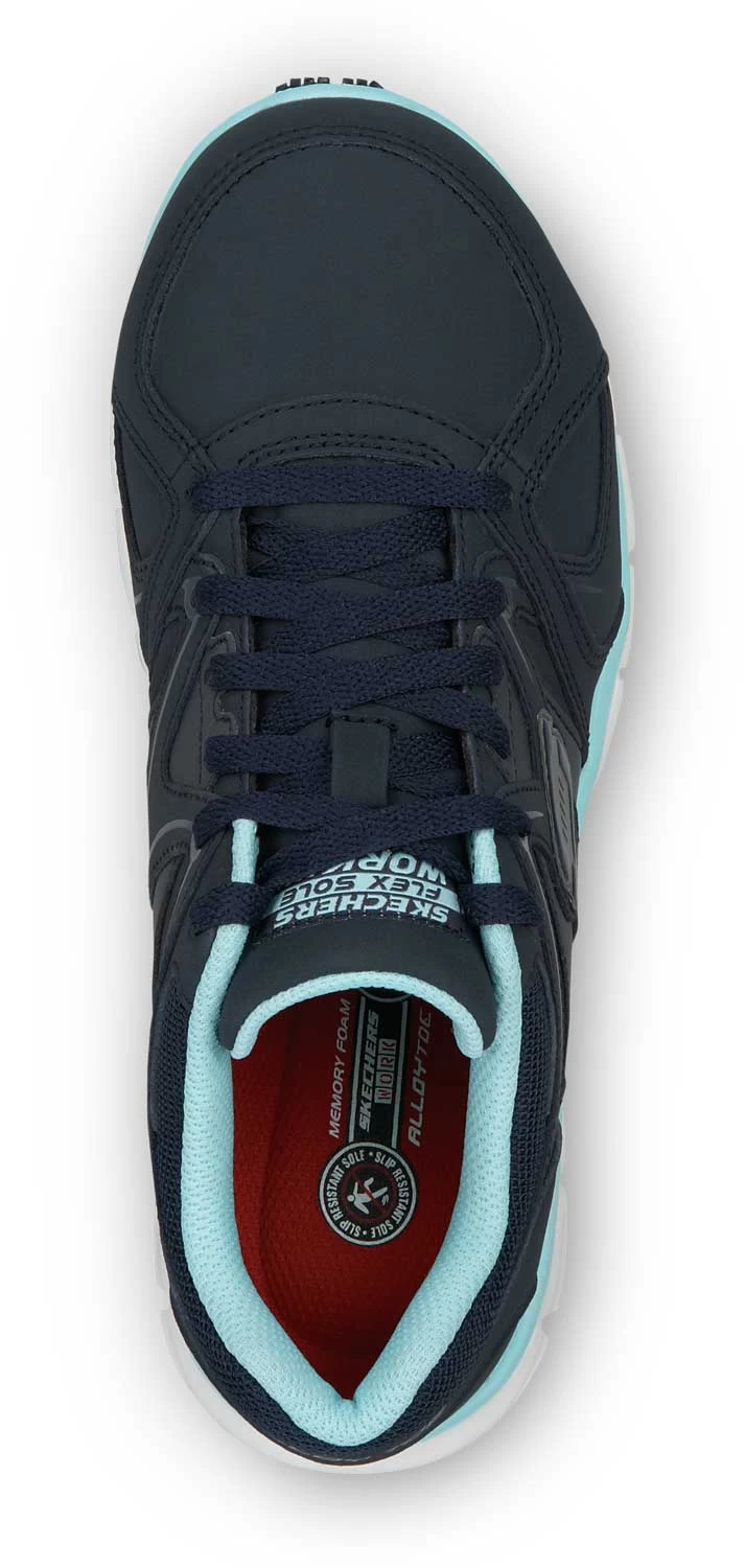 SKECHERS Work SSK406NVAQ Jackie, Women’s, Navy/Aqua, Athletic Style, Alloy Toe, EH, MaxTRAX Slip Resistant, Work Shoe