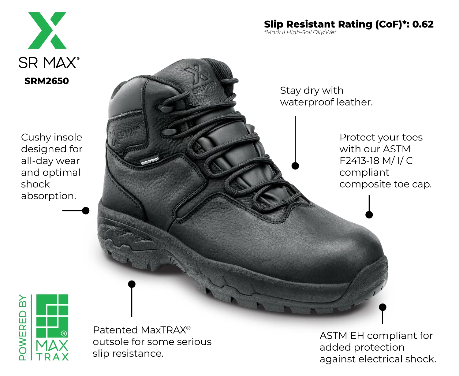 SR Max SRM2650 Denali, Men’s, Black, Hiker Style, Comp Toe, EH, Waterproof, MaxTRAX Slip Resistant, Work Boot