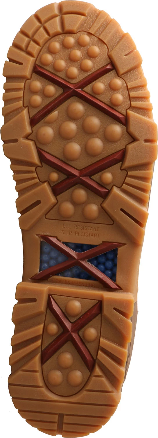 Full grain leather upper with reinforced pull tabs. Air mesh lining. Twisted X patented CellStretch comfort technology. Molded, removable footbed is moisture wicking, anti-bacterial, and machine washable. Compression molded EVA midsole. Oil and slip resistant rubber outsole. Nano toe. EH. MetGuard shield, internal met guard. ASTM F2413-18 M/ I/ C EH Mt compliant.