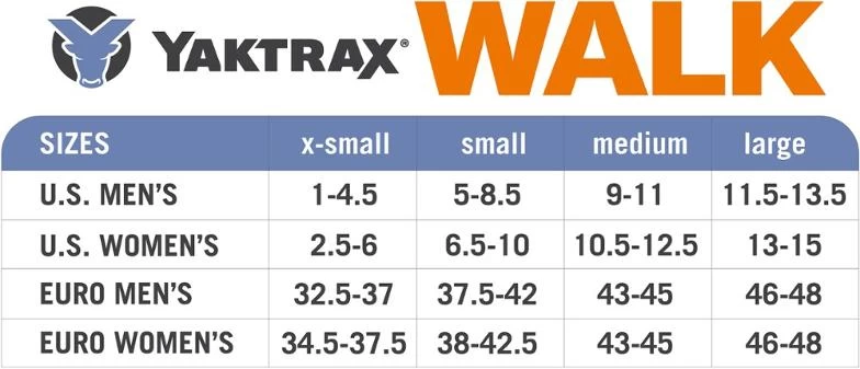 The Yaktrax Walker will give you instant confidence and safety in snowy or icy walking conditions. You will feel the same solid predictable grip you are accustomed to feeling on dry surfaces. The unique patented coil design provides 360 degrees of traction on packed snow or ice. The Walker is made of high strength abrasion resistant steel coils and the user friendly elastomer makes it easy to take on and off. You will move about naturally. There is nothing new to learn. Just walk as you normally would and experience stability on ice and snow like you have never felt before.